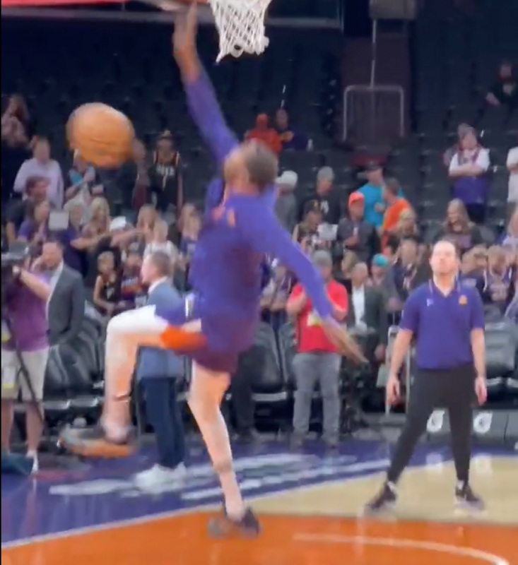 Kevin Durant took a fall while warming up for his first home game with the Suns