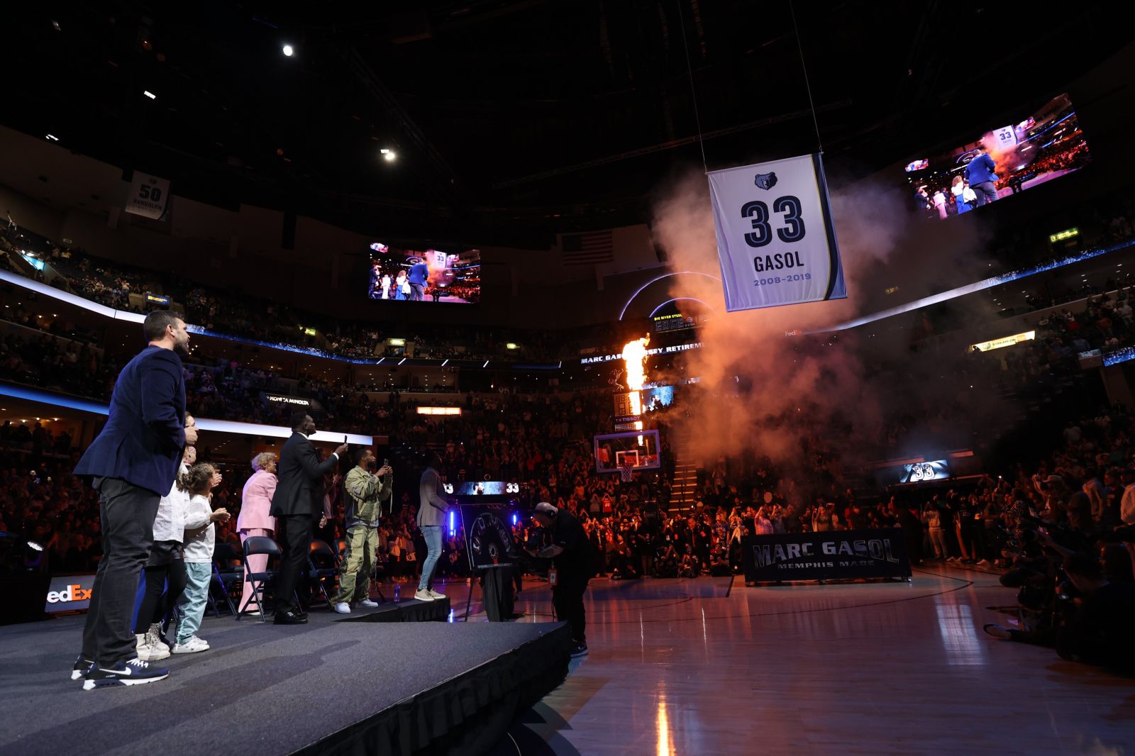 賽後,灰熊為Marc Gasol舉行球衣退休儀式,前隊友Mike Conley也到場參加,Zach Randolph與Tony Allen也到現場見證這一刻。