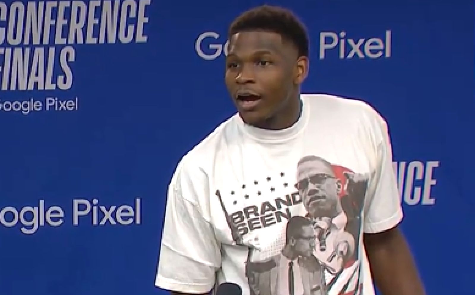 Edwards則站著回答道:「嗯...我應該說什麼呢?我該說我們會輸掉第五戰嗎?我絕對不會這樣說的。Micah Parsons,他對AE 1很著迷,然後我跟他說他穿US 14號,我會在G6帶給他一些帥鞋,這就是我跟他說的。」