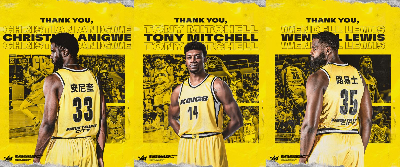 「新北國王正式宣布球員路易士(Wendell Lewis)、米歇爾(Tony Mitchell)、安尼奎(Christian Anigwe) 離隊,祝福三位未來職涯順利。