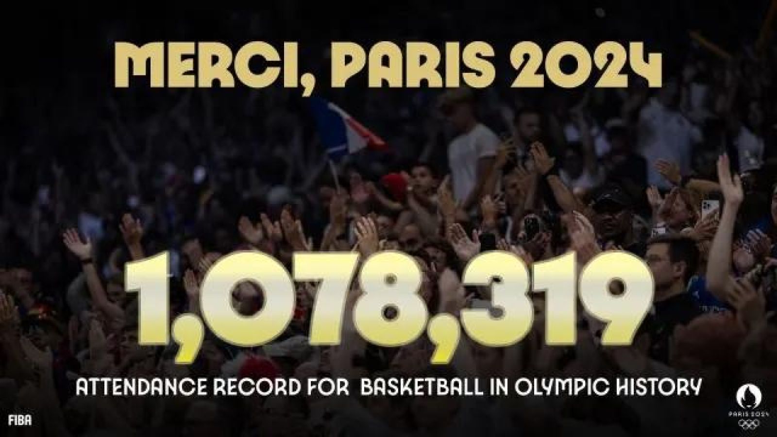 最後巴黎奧運籃球觀眾人數1078319名(108萬)超越亞特蘭大,創造奧運籃球比賽觀眾新紀錄。