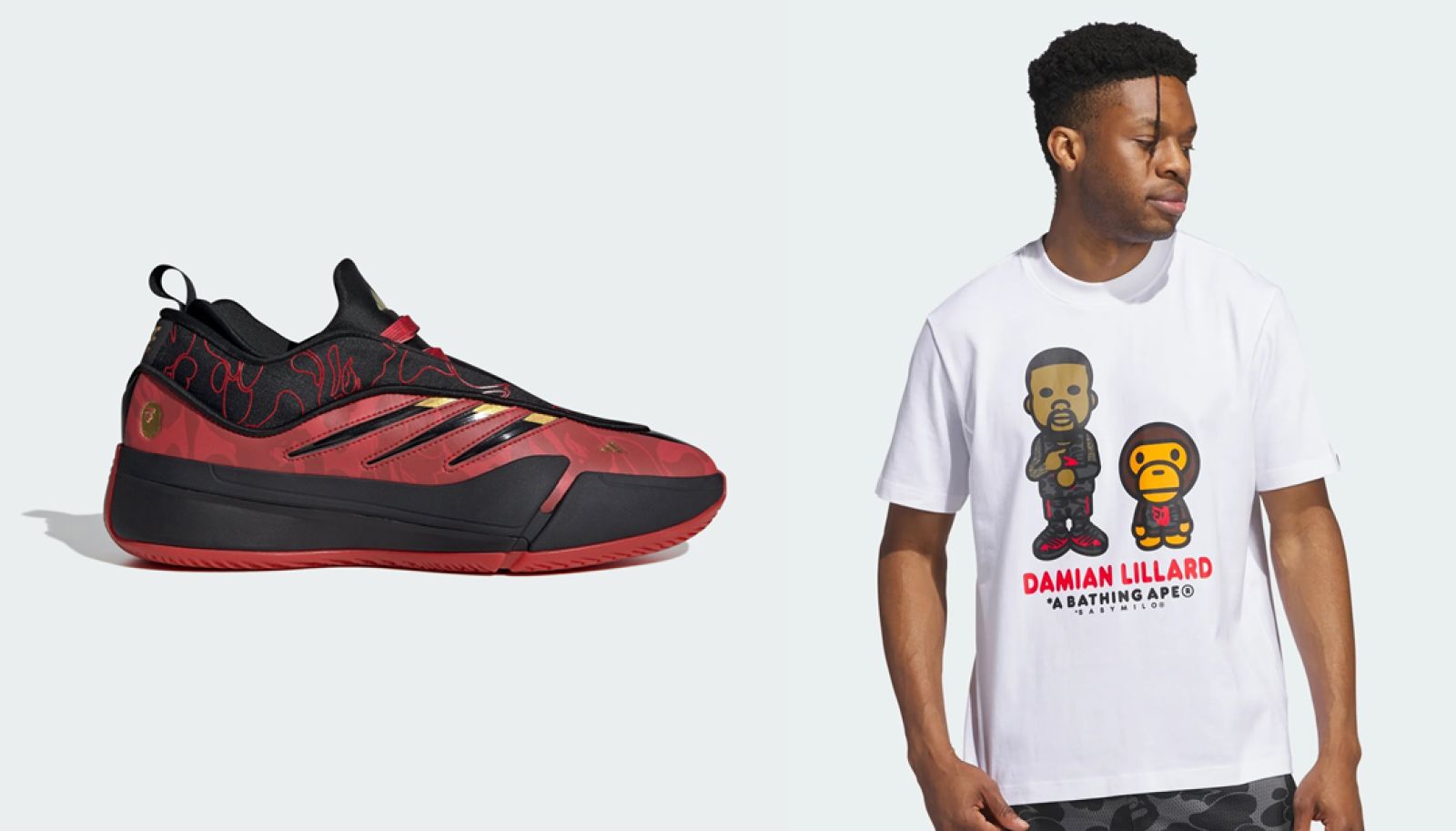 adidas Dame 9與潮牌「BAPE」共同推出聯名鞋款、服飾。圖/BAPE
