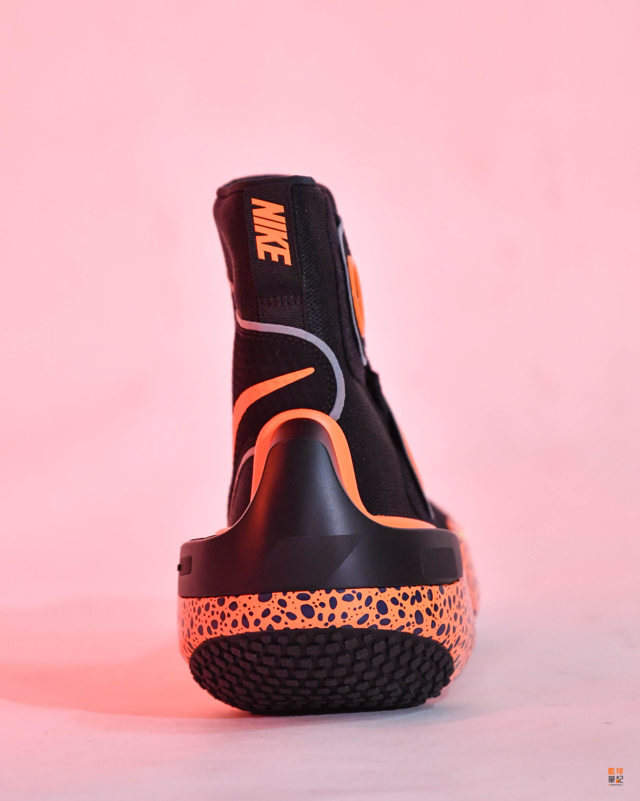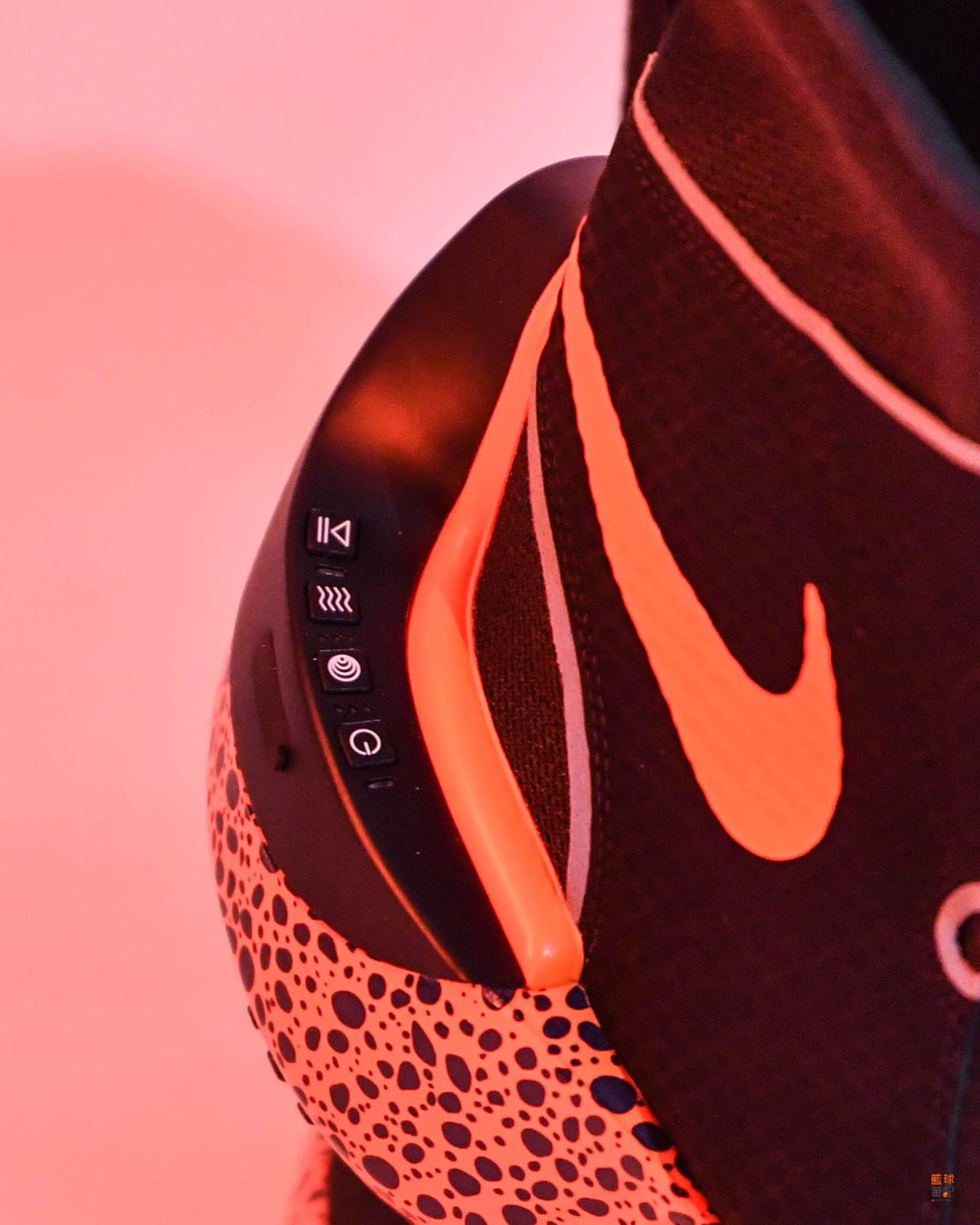 Nike x Hyperice 鞋款是採用穿戴式技術的行動高筒鞋,可隨時提供運動員腳踝和腳掌所需的熱能和動態氣壓式按摩。這款鞋款包含 Normatec 雙氣囊系統,切合平均分散上肢熱能的保暖元素。此組合設計用於將熱能傳導到雙腳和足踝的肌肉與組織深層,協助運動員在活動、運動表現和自然恢復上更有效率。