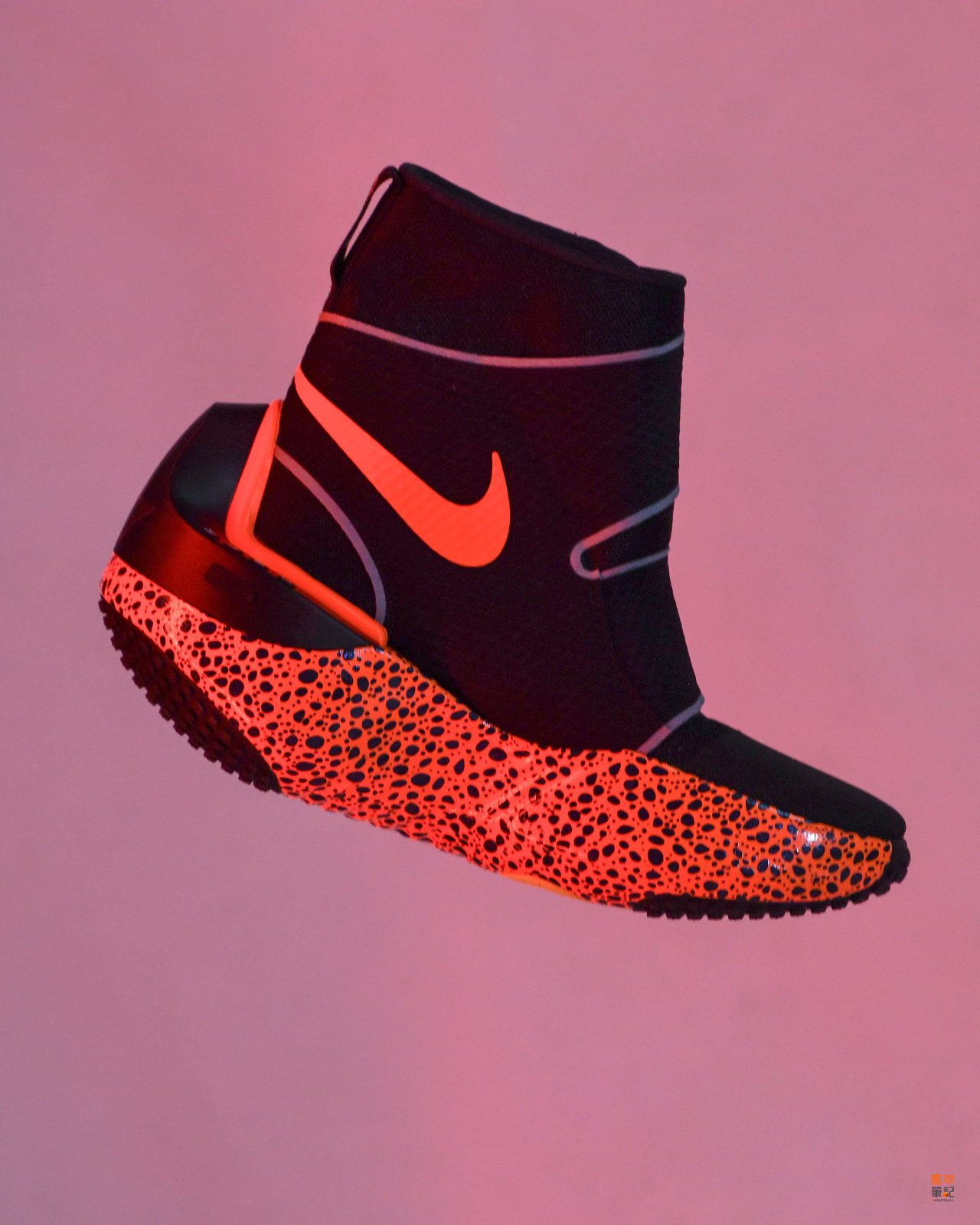 - Nike x Hyperice 鞋款是採用穿戴式技術的行動高筒鞋,可隨時提供運動員腳踝和腳掌所需的熱能和動態氣壓式按摩。