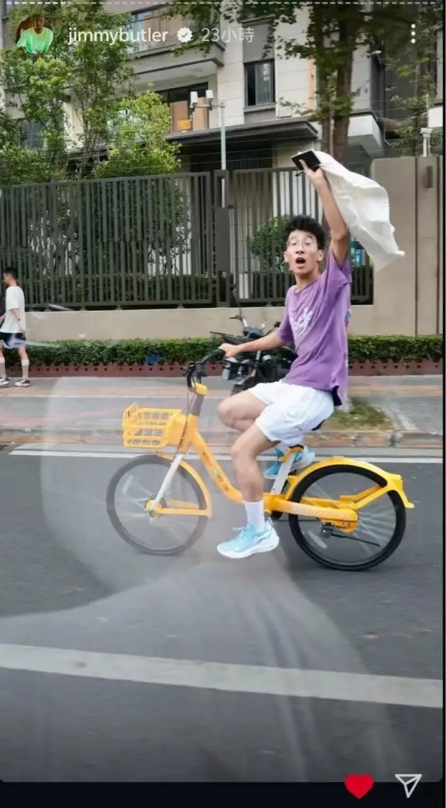 近期展開中國行的Jimmy Butler,近日在Instagram上分享了自己與中國球迷們的互動,其中更有一位球迷沿途了騎了五公里的腳踏車跟隨在Butler的車旁,Butler隨後也下車為這位騎腳踏車的球迷簽名。