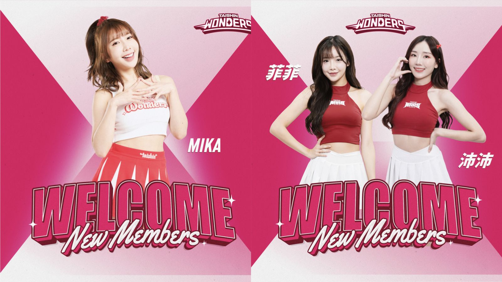 台新育樂今宣布臺北台新戰神啦啦隊Taishin Wonders陣容再升級,補強三位女神,包含今年七月離隊的「競技女神」Mika重磅回歸、味全龍啦啦隊「長腿女神」沛沛,以及樂天女孩「回眸女神」菲菲,Taishin Wonders全體陣容升級為13名女神與1名練習生,加上6位男神,共20位成員聯手應援,為新賽季的戰神主場再添豐富的視覺饗宴。