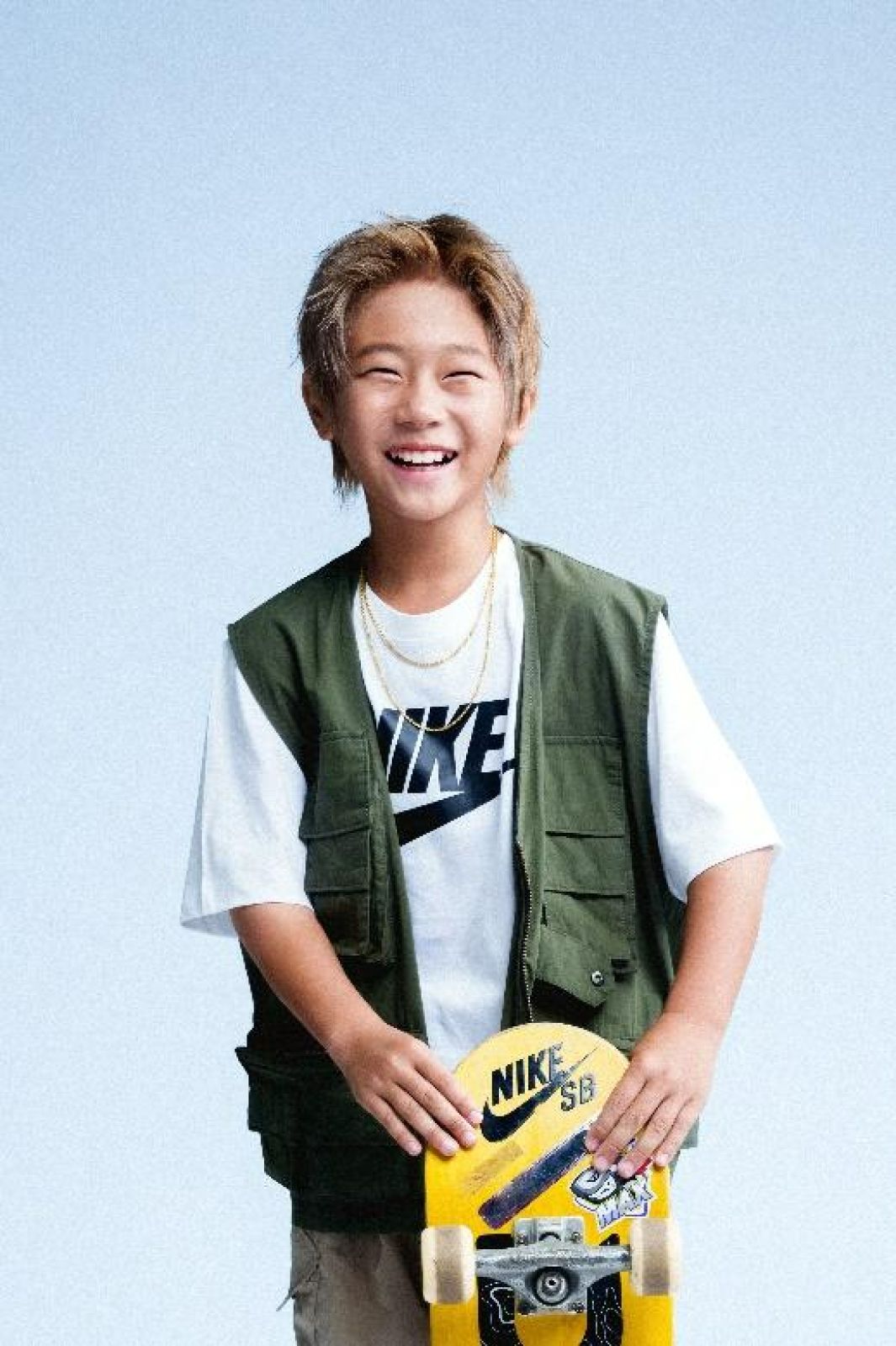 辜泳諺,10歲,目前長期旅居美國、日本和歐洲等世界各滑板大城市進行高強度訓練與參賽,年紀還小的他勇敢踏出舒適圈,以挑戰奧運舞台為目標無懼滑行。