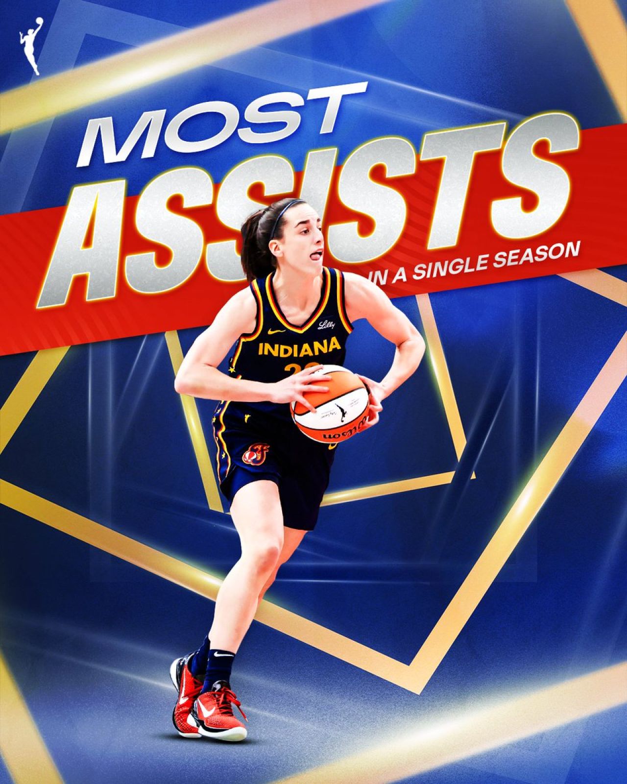第二節比賽,Caitlin Clark助攻Kelsey Mitchell上籃得分,拿到本場比賽第五次助攻,賽季總助攻數來到317次,成為WNBA史上單季助攻次數最多球員。